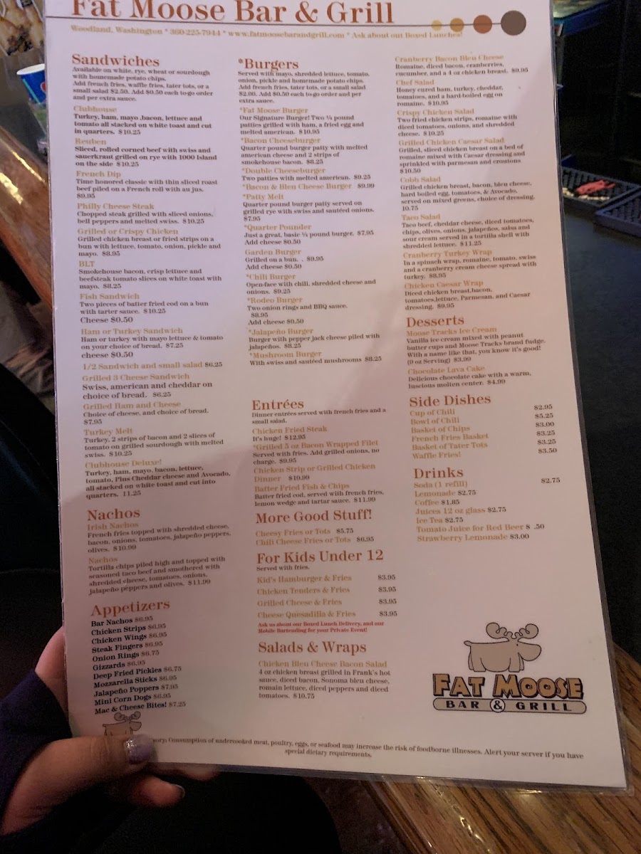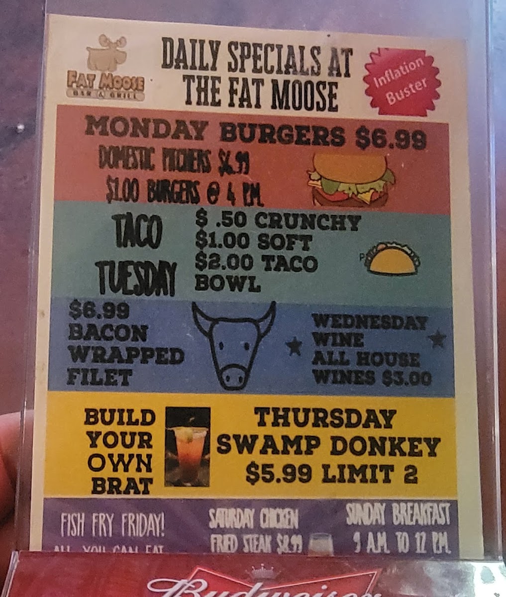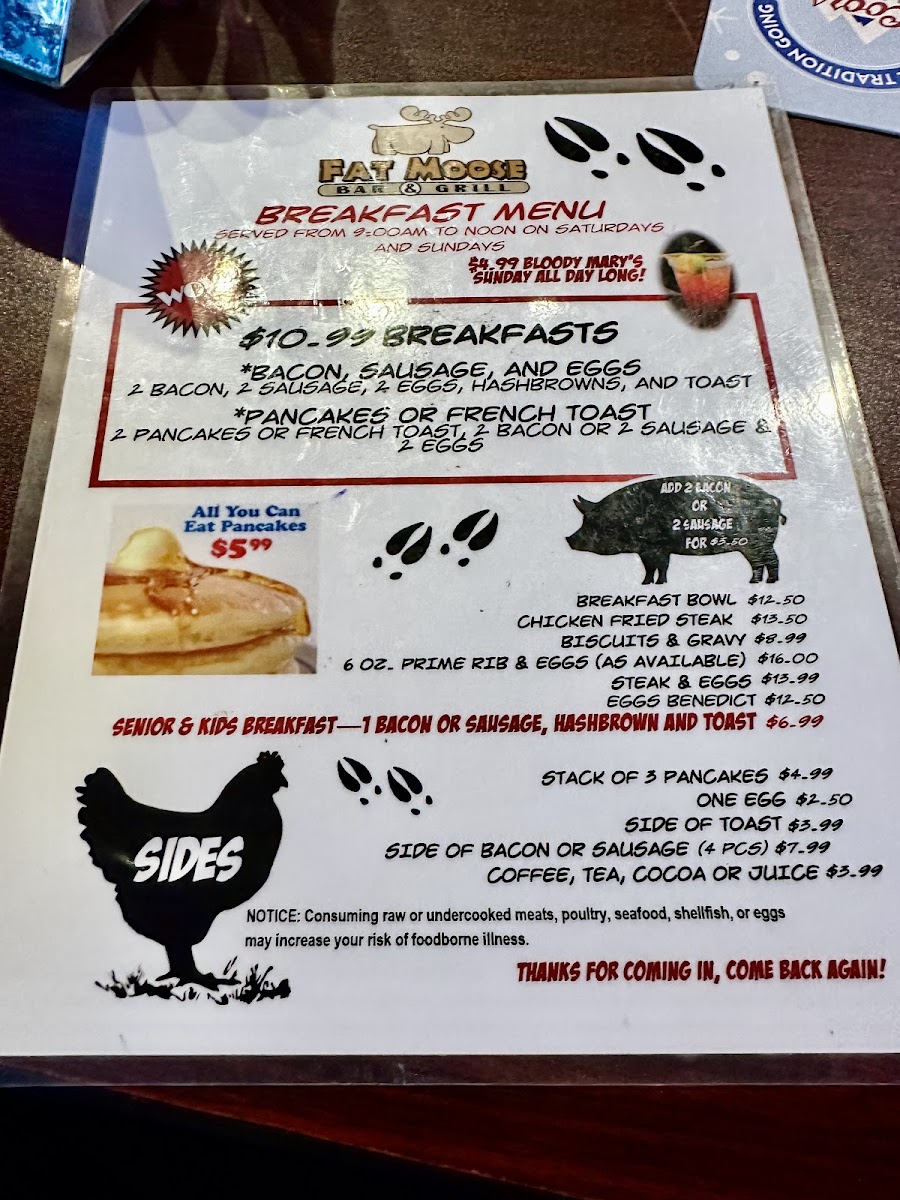 The menu at Fat Moose Bar & Grill reflects a laid-back, approachable bar and grill style, offering comforting, satisfying dishes that suit any time of day. Whether you're stopping in for a casual breakfast, a hearty lunch, or a relaxed evening meal, the menu features classic favorites alongside tempting bar bites and well-crafted drinks.